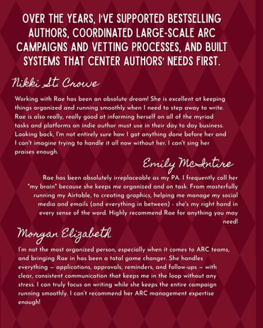From sign-ups to reviews, I’ll place your love story in the hands of readers who are the best fit based on your goals—all while keeping you looped in every step of the way.